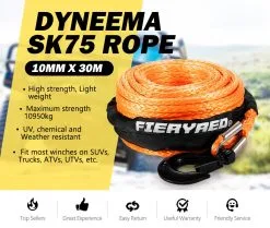Fieryred Hand Winch 2000Kg/4410Lbs 3 Speed Dyneema Rope Manual Car
