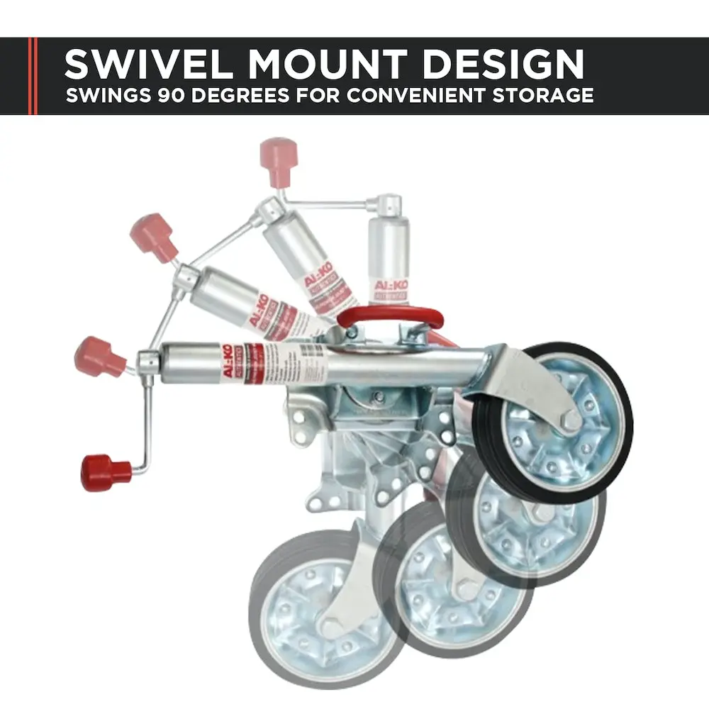 This premium AL-KO swing jockey wheel allows for quick coupling and uncoupling of trailers and caravans. The shaft can be rotated into a horizontal position, so you never have to remove your jockey wheel after use. Just swing it up for convenient storage.
