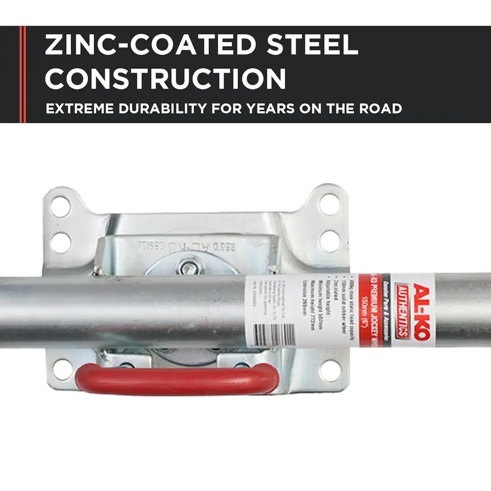 With a 48mm zinc-coated shaft, this jockey wheel is resistant to corrosion. Its 250mm maximum extension allows for a lift range of 320mm to 570mm between the ground and the centre of your drawbar. With its high weight capacity and convenient swivel mount, this jockey wheel is a must-have for serious campers