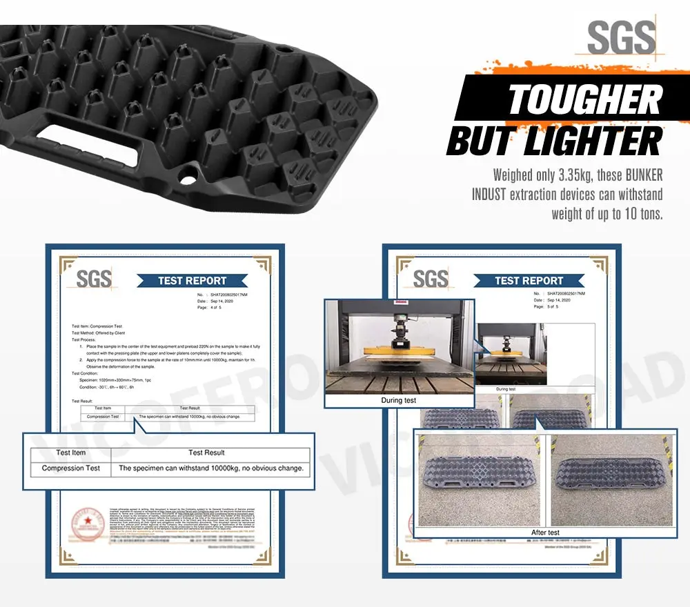 DESCRIPTION Getting your vehicle unstuck from its boggy trap is quite frustrating, even an all-wheel or four-wheel drive can barely escape that dilemma. But the inception of BUNKER INDUST recovery track will 100% ease your pains!