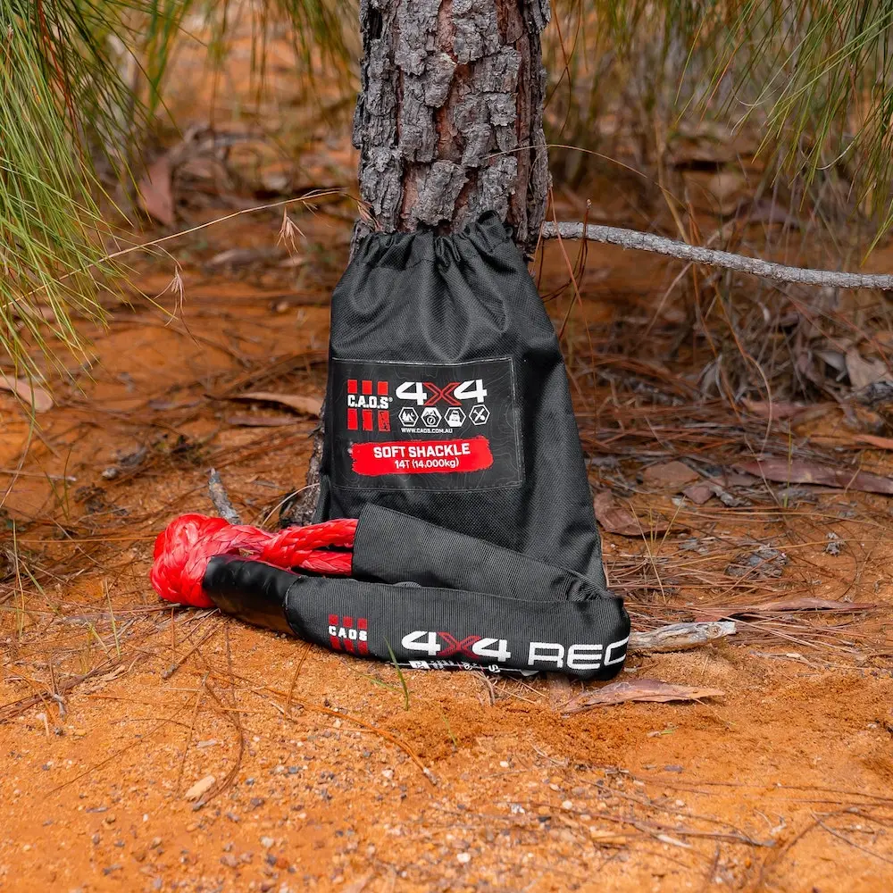 CAOS 14T Soft Shackle with Nylon Bag CAOS Soft Shackle 14T (14,000kg) break strength. This CAOS Soft Shackle is a safe alternative to 4.75T WLL bow shackles. CAOS Soft Shackles are made from high quality rope (UHMwPE – Ultra High Molecular weight Polyethylene) and the rubber protective layer at the wear point provides (non-binding) easy release after use. The CAOS Soft Shackle has a canvas protect sleeve. CAOS 4X4 Recovery gear is a class above all else. NATA Certified 14,000kg breaking strength – Tested Tough by Aussies for Aussies. Features: