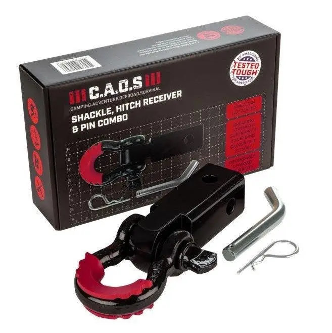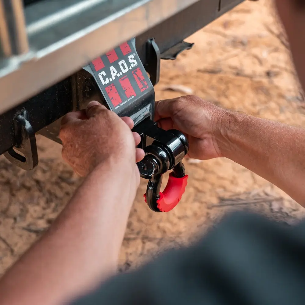 CAOS 4.75T WLL Shackle and Hitch Receiver with Tested Tough Lifetime Warranty Australian NATA lab tested for durability and strength. CAOS Shackle and Hitch Receiver combo will convert any standard towbar hitch into a rated recovery point. Purpose-built for snatch or winch recovery, perfect for any vehicles with trouble mounting rear recovery point. Features: