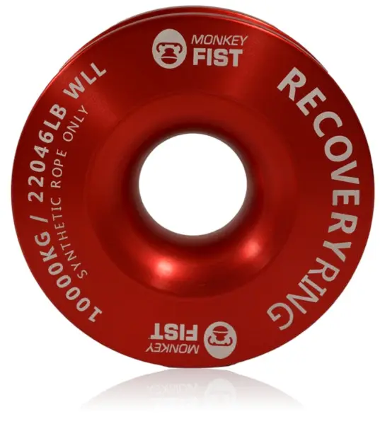 This solid billet 6061 T6 Aluminium Recovery Ring which is designed to be used with the Monkey Fist soft shackle will allow you to setup a double line pull with your synthetic rope electric winch.