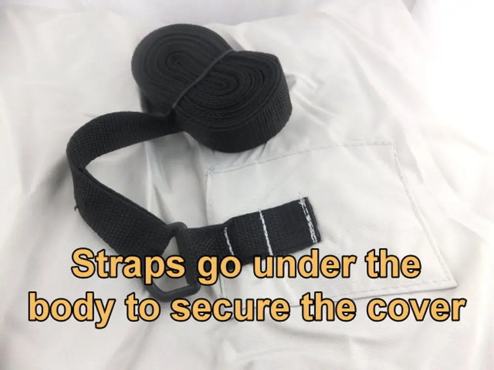 This cover is coated twice with polyurethane on the bottom or downside to insure maximum water resistant. It is also breathable so moisture can escape helping to eliminate mold and mildew. Other great features include an elastic hem with reinforced base, 3 zippers on the door side and nylon securing straps.