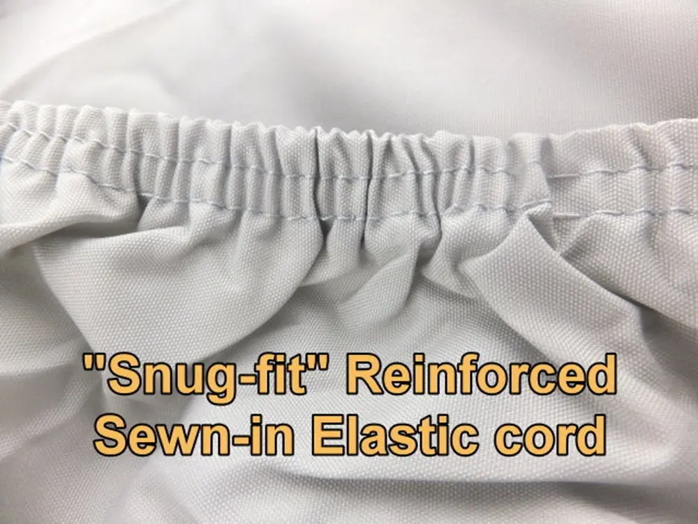 This cover is coated twice with polyurethane on the bottom or downside to insure maximum water resistant. It is also breathable so moisture can escape helping to eliminate mold and mildew. Other great features include an elastic hem with reinforced base, 3 zippers on the door side and nylon securing straps.