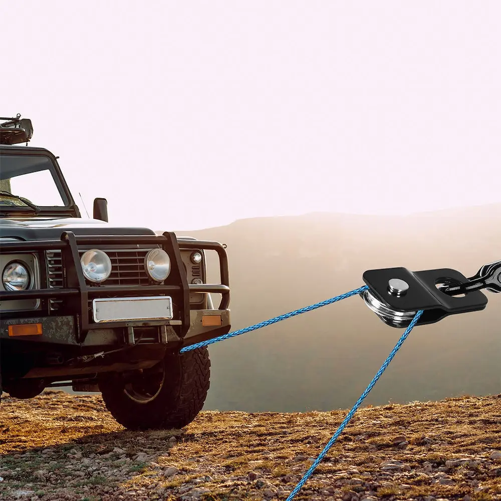 Winch your car up onto your trailer with your snatch block. Reduce the effort needed to pull your car up at the cost of longer pulling time. You can move heavy loads just with muscle power. Pull heavier loads with your electric winch. Each additional snatch block pulley reduces the load on your electric winch. Just snap your snatch block over the cable and hitch it up. Grab your powder-coated carbon steel winch block. Chuck it into your emergency box. When you need a snatch block you really need a snatch block. Better to be safe than sorry. Gain a mechanical advantage or change the angle of the load you pull. Pull a car up a hill as you are driving down a hill. Get someone out of a tricky spot around a corner. Make sure you get yourself some cables or rope and some d-clips. Your snatch block is just a fancy paperweight without additional gear. Better to plan ahead than be caught out. Key Features Off road self-rescue essential tool Effortless and high efficiency car recovery Excellent working on angled pulling 4000kg powerful pulling capacity Suits most cables ropes shackles and cars Safe and reliable Rust proof and weather resistant Easy to use and storage SPECIFICATION: Brand: Manan Material: Carbon steel Pulley wheel surface: Zinc plated Side plate surface: Powder coated Load capacity: 4000kg per snatch block Plate hole diameter: 3.8cm Side plate thickness: 4mm Rope required thickness: ≤10mm Dimension: 14.5cm x 7.5cm x 3.4cm (L x W x H) Colour: Black PACKAGE CONTENT: 2 x Manan Snatch Block
