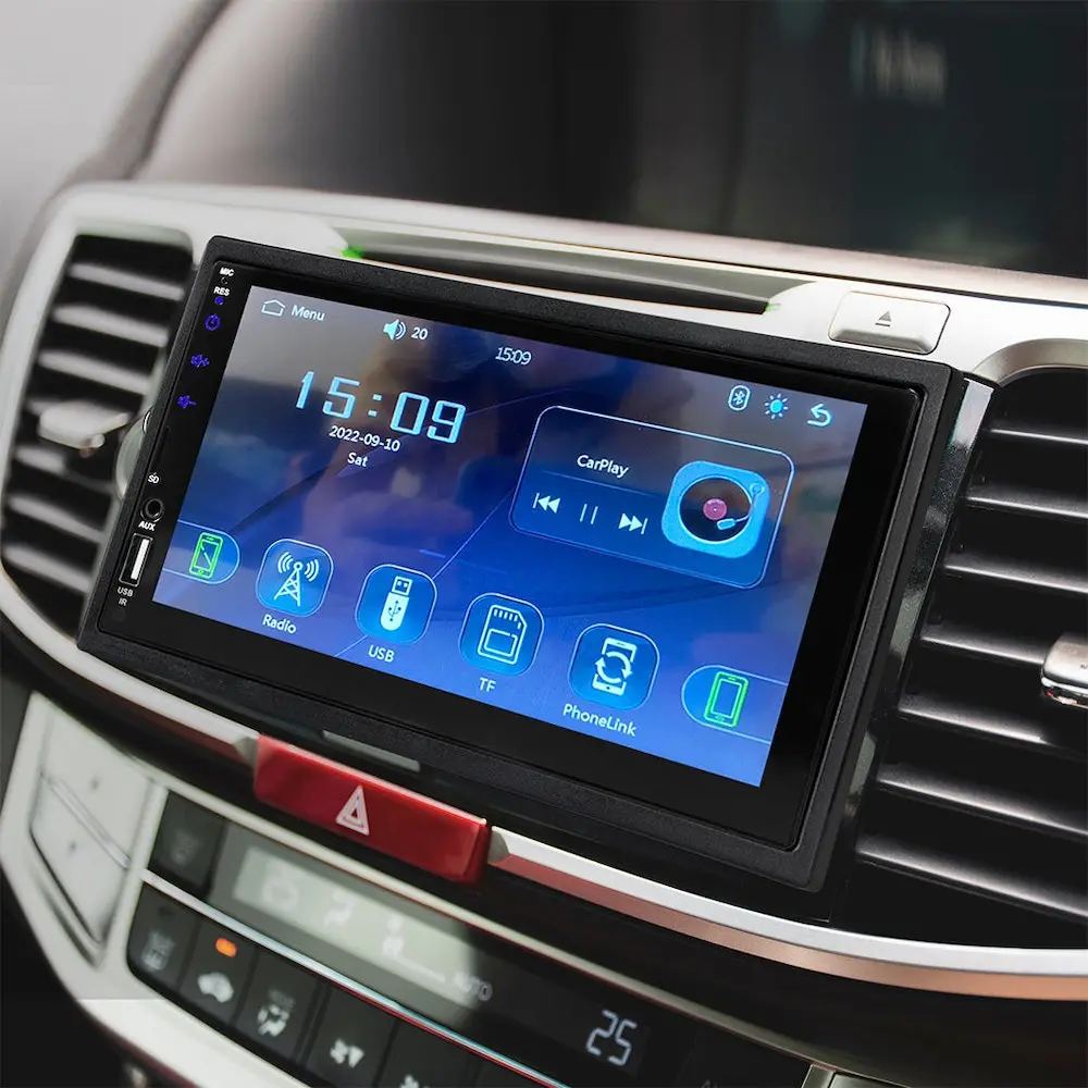 Install your double din head unit in time for the road trip of a lifetime. Travel all the highways and byways. Listen to your favourite music. Use your reversing camera to safely park at your destination. Plug a usb drive into your double din car stereo with your kid’s favourite TV show. You might not enjoy it but keeping your kids quiet is priceless. Use the remote control to change the settings. Connect your phone to your new head unit with MirrorLink then let it do everything. Use your steering wheel to answer the phone. Or go old school and listen to the FM radio instead. If you have the skills then install your advanced car radio with reversing camera. It might take a bit of time but with a few tools you can do it yourself. If not then give a mate with a case of beer to do it for you. Connect your phone up by Bluetooth and play some banging tunes. A phone not your style fill up an SD card with movies and music to play as set up your tent in the middle of nowhere. Key Features Secure driving 7” Capacitive touch screen car multimedia player MirrorLink CarPlay Android Auto Function BT 5.1 steering wheel control AUX and FM radio TF card and USB play mode HD reversing camera with night vision Fit all cars with 2 din space and 12V battery terminals 12 Languages supported SPECIFICATION: Brand: Manan System: Melis Voltage: 12V Placement: Dashboard Compatible system: Apple CarPlay/Android Auto Supported: MirrorLink Steering wheel control Reversing camera Aux Screen Resolution: 1024×800 Screen type: TFT touch screen Screen size: 7” Connection: USB/TF card (max 256GB) USB interface: USB2.0 Bluetooth name: CAR BT 5.1 Bluetooth model: 6905 Radio frequency: FM 87.5 – 108.0MHz Operating temperature: -20°C to 85°C Audio format: MP3/WMA/OGG/FLAC/AAC/AC3/APE Audio Amplifier: 7388 Video format: MKV/AVI/MOV/MP /TS/ASF/FLV/PMP/RMV/MPG/VOB/WMV Image format: JPEG/BMP/GIF/PNG Initial password: 8800 Output power: 4×45 watts Language: English French Spanish Russian Italian Portugal German Polish Chinese(simplified) Turkish Arabic Hebrew Player dimension: 180mm x 102mm x 64mm (W x H x D) Colour: Black PACKAGE CONTENT: 1 x Manan MP5 Player 2 x ISO Power Cable 1 x Power cable for camera 1 x 8 LED camera 1 x 6m cable 1 x Plastic frame 2 x Metal Panel 4 x Screws 1 x Instruction Manual