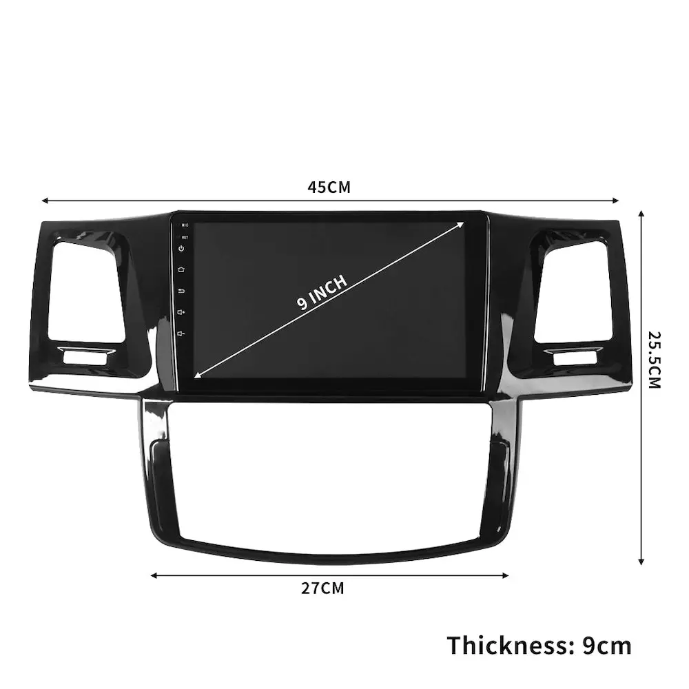 Install your double din head unit in time for the road trip of a lifetime. Travel all the highways and byways. Listen to your favourite music. Use the reversing camera to safely park at your destination. Plug a usb drive into your double din car stereo with your kid’s favourite TV show. You might not enjoy it but keeping your kids quiet is priceless. Select from over 40 languages to control your unit. Connect your phone to your new head unit with MirrorLink then let it do everything. Use your steering wheel to answer the phone. Or go old school and listen to the FM radio instead. If you have the skills then install your advanced car radio with reversing camera. It might take a bit of time but with a few tools you can do it yourself. If not then give a case of beer to a mate so they will do it for you. Connect your phone up by Bluetooth and play some banging tunes. A phone not your style connect a USB 3.0 storage device with movies and music to play as set up your tent in the middle of nowhere. Key Features Safe driving and unlimited fun 9’’ 2.5D IPS capacitive touch screen car multimedia player 1024*600 HD display support 1080P video playback GPS online and offline supported Carplay Android auto BT 5.0 WIFI SWC Dual USB 3.0 interface AV output sound recorder Play DAB with FM radio Stable and smooth operating Split screen mode DSP 36-band EQ stereophonic surround HD night vision reversing OBD2 Applicable Many languages supported Fit car TOYOTA FORTUNER/ VIGO/ HILUX (2007-2015) SPECIFICATION: Power Supply: DC 12V Car fitment: TOYOTA FORTUNER/ VIGO/ HILUX (2007-2015) Placement: Dashboard Non-destructive installation: Direct plug to plug OS: Android 11.0 CPU: Quad-core Screen size: 9’’ 2.5D IPS tempered screen Screen type: Capacitive Touch Screen Resolution: 1024 x 600 HD video: Support 1080P HD RAM + Storage: 2GB + 16GB USB interface: USB3.0 Extended USB: Max 128GB Navigation: GPS online/offline FM brand: FM Bluetooth name: Car BT 5.0 Bluetooth keyword: 0000 Function: Wireless/wired Carplay wired android auto WIFI BT 5.0 video playback HD reversing camera DSP 36EQ steering wheel control (SWC) Other function: Audio recorder AV output FM radio screenshot car amplifier language switch Logo rewrite calendar Time setting calculator theme and wallpaper replacing screen brightness setting Audio format: MP3 MP2 AAC OGG FLAC APE WMA WAV RM AC3 Video format: AVI 3GP/MP4 MOV MPG MKV WMV RMVB Language supported: Over 40 languages Dimension: 45cm x 25.5cm (L x W) Colour: Black PACKAGE CONTENT: 1 x Manan Android Multimedia GPS Car Stereo 1 x Manual AC panel 1 x Auto AC panel 1 x Power Cable 1 x GPS Antenna 2 x USB Cable 1 x RCA Cable 1 x Camera Power Cable 1 x Camera Input Cable 1 x Camera Extension Cable 1 x Reversing Camera 1 x Instruction Manual