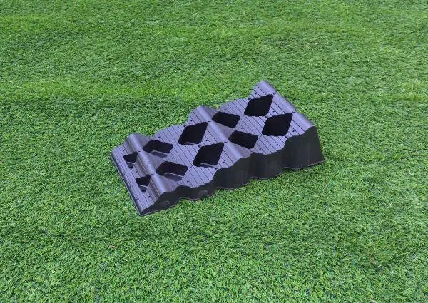 Unique and innovative Milenco design offering 2 step wheel pocketing, no need for chocks with a 50% base surface area to reduce sinkage on soft ground and sand, with 50% top surface.