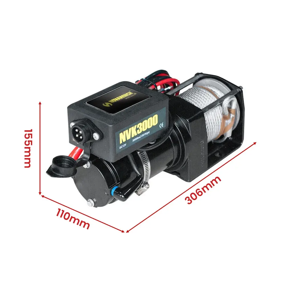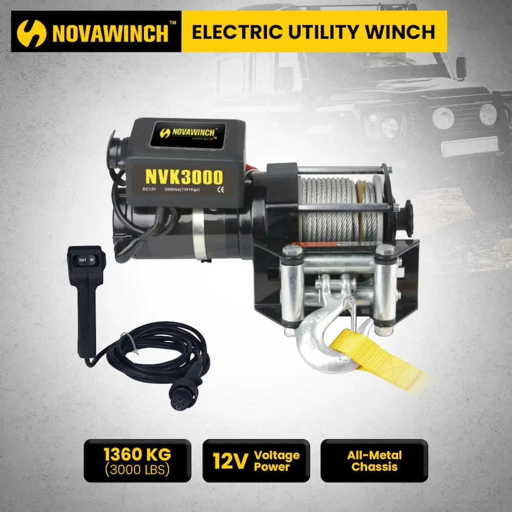 Haul heavy loads with ease using the Novawinch 12V Electric Utility Winch! A reliable and sturdy option for hoisting, pulling or lifting heavy objects, this electric winch can lift weights up to a whopping 3000lbs and features an all-metal, corrosion-resistant and weatherproof chassis that can handle even the toughest situations.