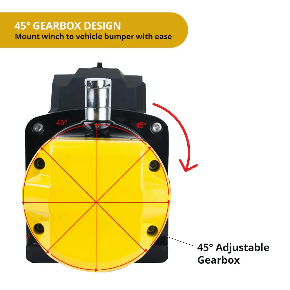 Chrome-plated aluminum ergonomic free spool knob lifts and turns effortlessly. Easily rotates in 45 gearbox design allows winch can be mounted into vehicle bumper. Winch body hardware and roller fairlead upgrade to stainless steel, avoid rusting, and look great at long serve.