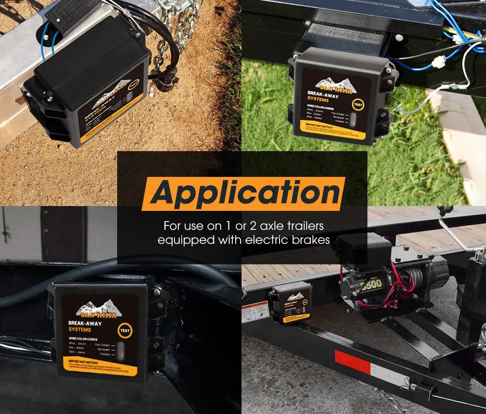 DESCRIPTION If you are towing a trailer with electric brakes that weighs over 2,000kg (4,409lbs), it’s a legal requirement to have a break away system. The break away system for trailers mounts to the trailer, and in case of uncoupling the trailer break away system will activate electric brakes and safely stop the trailer.