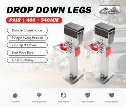San Hima 2x 400MM Corner Legs Drop Down W/Handle Steel Base 1200LBS