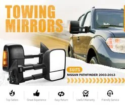San Hima Pair Extendable Towing Mirrors For Nissan Pathfinder MY 2003-2013 Black