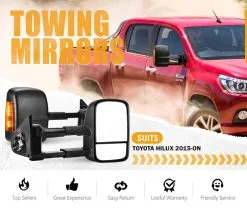San Hima Pair Extendable Towing Mirrors For Toyota Hilux 2005-2015 W/ Indicators Pair