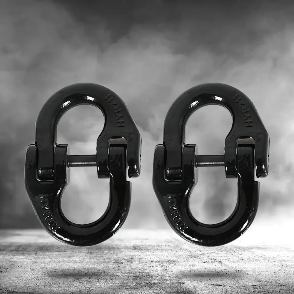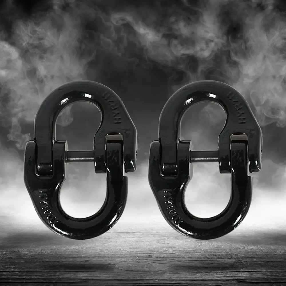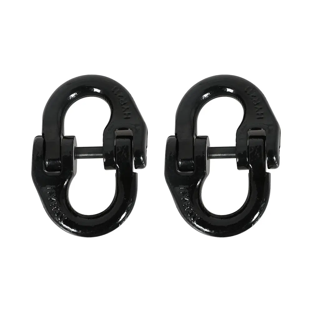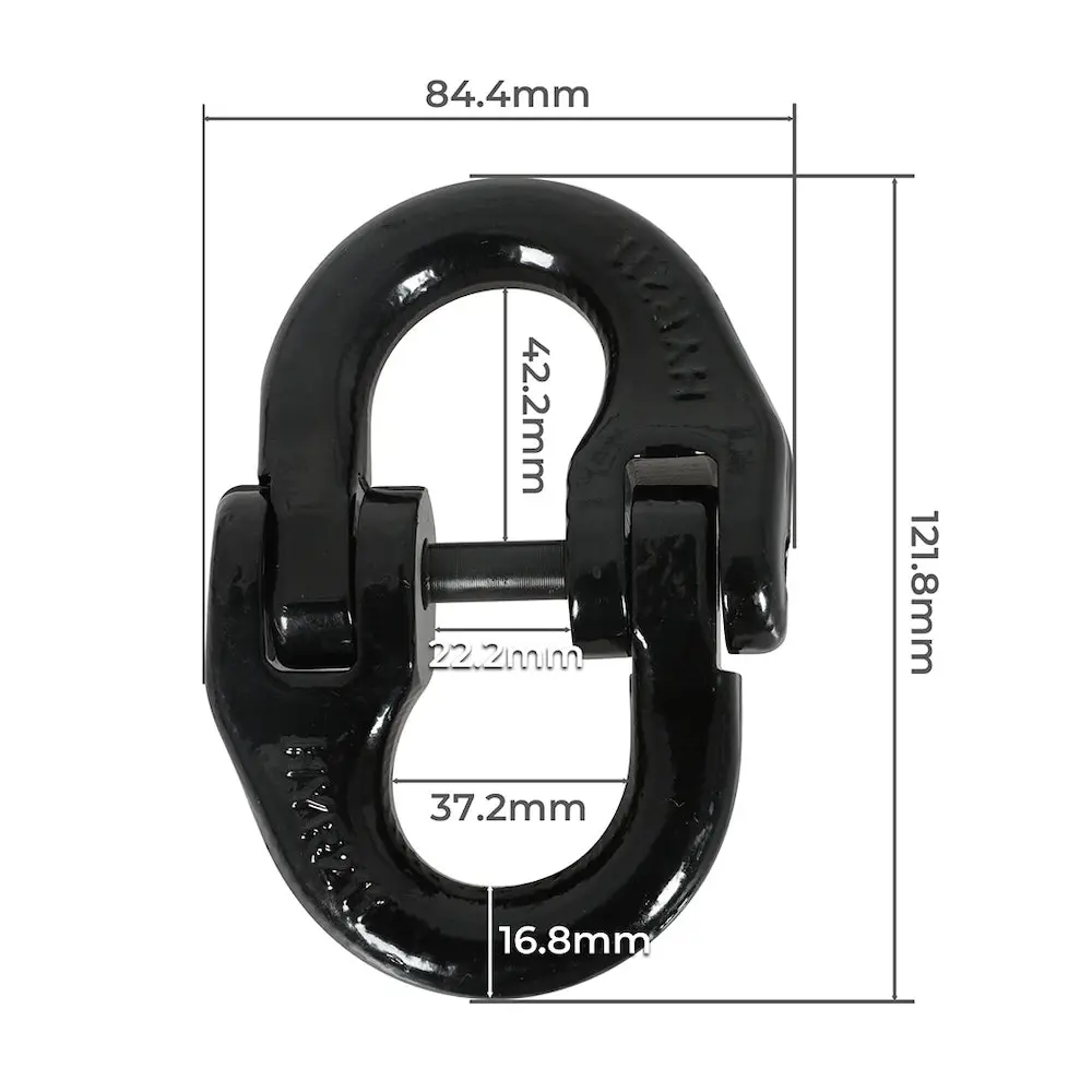 Connect grade 80 chain with your hammer lock. Shackle your trailer to your 4WD. Keep everything compliant safe and secure. Always test your hammer lock is properly connected. Attach two chain links together. Place your hammerlock over the chain the hammer the pin through the middle. If it won’t fit then grind the sides a tiny amount. Too easy. It is a lump of powder-coated steel. Your hammerlock isn’t complicated. As long as you aren’t storing it in salt water you will keep it for many years to come. Just don’t lose the pin. Your hammerlock is rated to 5.3 tonnes. Stay safe and keep under that weight limit. You get two hammer locks to make sure you always have enough. Get yourself a hammerlock instead of welding some chains together. They are going to be more mechanically sound compared to a weld too. Perfect for attaching a rated safety chain to a trailer drawbar. Key Features Made with 35CrMo steel Drop forged and heat treated High strength Standard G80 WLL 5.3 tonnes Blackpowder-coated finish Protected from corrosion and wear Suitable for lifting lashing and rigging SPECIFICATION: Material: 35CrMo alloy steel Finish: Powder-coated Grade: G80 standard lifting WLL: 5.3 tonnes Weight: 1.36kg Dimensions: 8.40cmx 12.18 cm (W x H) Colour: Black PACKAGE CONTENT: 2 x G80 hammerlock coupler