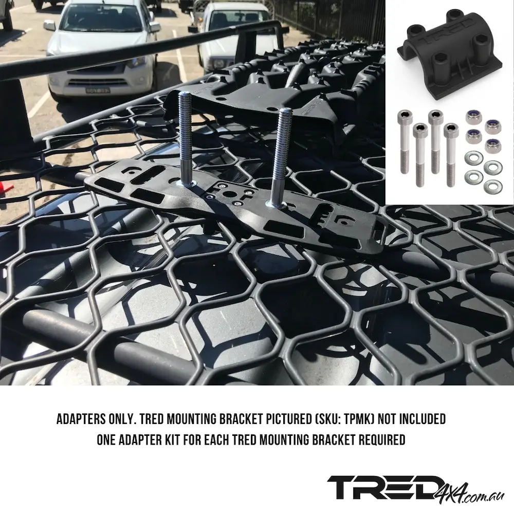 The TRED Mounting Bracket Adapter Kit 01 has been specifically developed to be used in conjunction with the TRED Mounting Baseplate* (SKU: TMBP01*) for flat mounting of recovery boards on a roof rack where there is 25mm crossbar support tubes under mesh. If there is no mesh on the roof rack, additional bracing might be required to eliminate twisting and the supplied hardware might need to be shortened for a neater finish. Kit Contents: 1 x TRED U Bracket 4 x M5 Stainless Steel Nyloc Nuts 4 x M5 x 40mm Stainless Steel Socket Head Bolt 4 x M5 Stainless Steel Washers