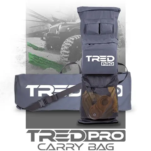 The Ultimate Off-Road Carry Bag to suit TRED Pro, TRED HD, TRED GT, TRED 1100, TRED 800 and other brands. The TRED Pro Carry Bag is made from super durable and waterproof canvas material. It features various gear storage pockets for your tow straps, shackles, winch blocks and anything else you need to carry. The extra large front pocket is made from high quality UV stabilised mesh, great for keeping anything you need to dry out and doubles as a great rear wheel trash bag. The webbing straps will attach the bag to your rear wheel carrier, roof racks and anywhere else you can strap it down, they also double as great backpack straps. There is no other recovery gear bag like it.